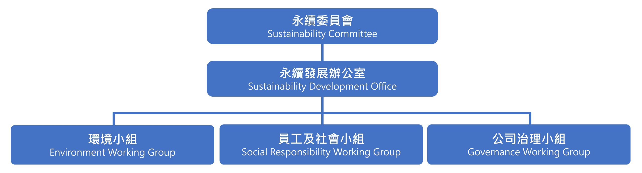 同時設立永續發展之專(兼)職單位,協助永續委員會推行各項計畫,於執行長室成立專職永續發展辦公室,統籌本公司永續事宜。另分別成立環境、社會、治理三個兼職工作小組制定工作計畫與執行。