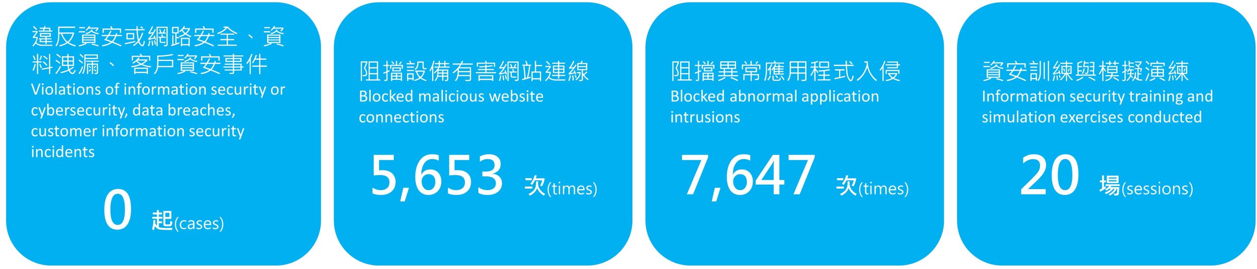 訂定4項資訊安全政策,以保護全體員工、客戶、供應商及營運相關資訊資產之安全,確保公司永續經營。